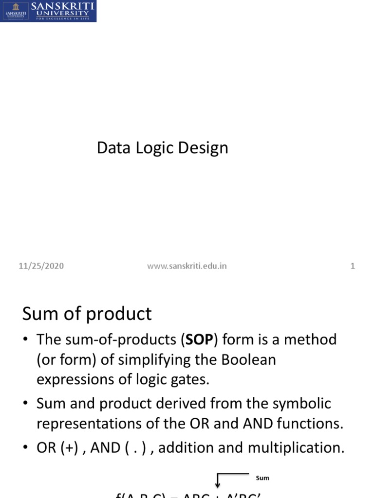 In the sum of the product form of representation, the product num is logical and operation of the different input variables. In this digital electronics tutorial, we will learn about: Sop and pos help us simplify the complex boolean. sum of product form is a form of expression in boolean algebra in which different product terms of. sop refers to the sum of the product of the minterms, whereas pos is the product of the sum of terms. Sum of products or sop form. Sum of products examples in. boolean logic in sop (sum of products) and pos (product of sums) forms is foundational to digital circuit design, providing a systematic way of expressing and. the sum of product form. sum of product form.